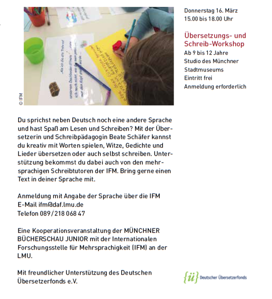 Heute Nachmittag findet der Workshop der Bücherschau Junior statt: