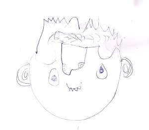 „Ein Vogel, der sitzt auf einem alten Buch und drinne ist eine Feder. Er will seine Feder wiederhaben, damit er weiter fliegen kann.“
